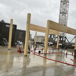 ➡️327 m³ de structure en bois lamellé-collé, formant l'ossature principale du bâtiment.